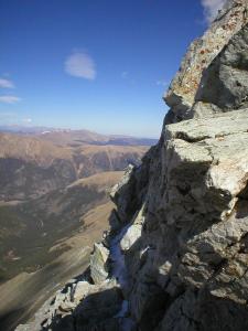 That’s taken right after crossing it. You go on the left side, jamming your hands into cracks in the wall as hard as you can. If you don’t, there’s a couple hundred feet of air right underneath you. Clearly, it would have been safer to turn back, but that wasn’t really an option. About 10 minutes into the route, you’re essentially committed to going to the top, because you have a 20′ near-vertical wall to scale.