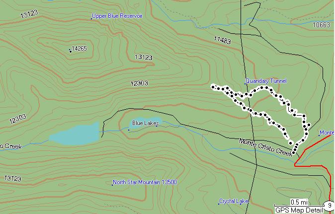According to my GPS, I had a total ascent of 1900′, in 3.0x miles. My highest point was 12,290′. Here’s the track: