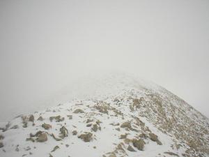 A little higher up the summit ridge, there were a bunch of rocks with some cool snow patterns on them. Also, notice the gray skies again: