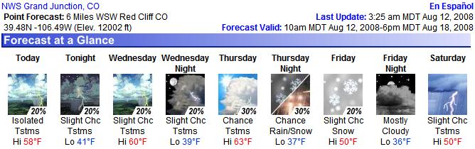 I checked the weather for the Beaver Creek area this morning and saw something I hadn’t seen in months: snow forecasted!