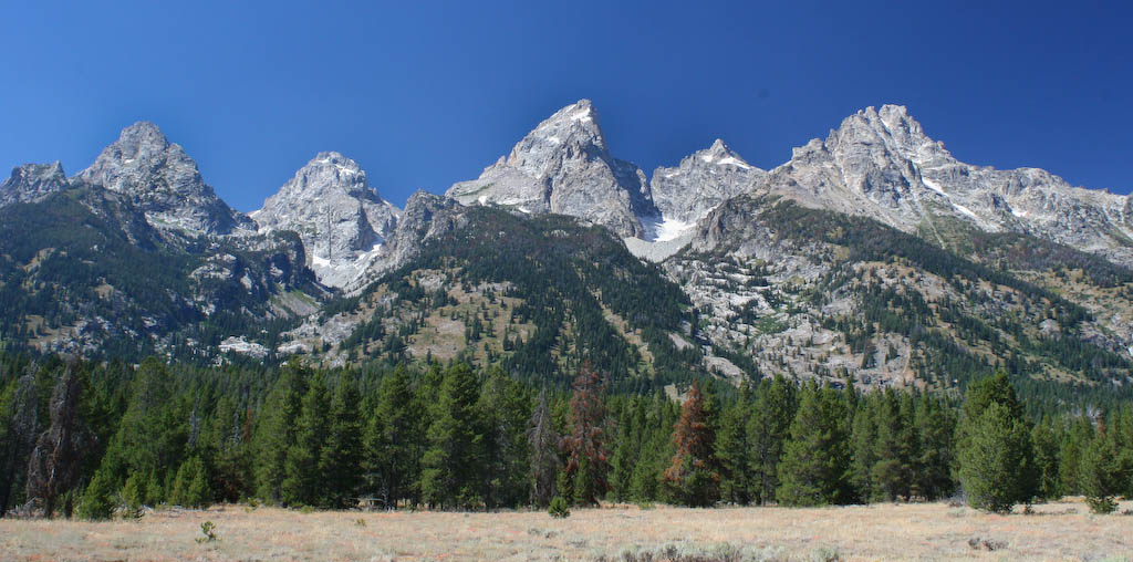 This picture has Teewinot on the left, Mt. Owen on the right, and the Grand p