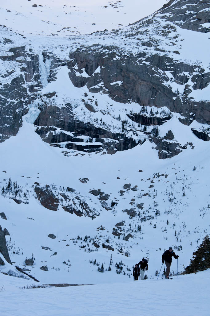 We carried our skis to roughly 13,250′, about 600′ from the top of the Trough. That was the end of the skiable snow, and it was great to get them off our backs.