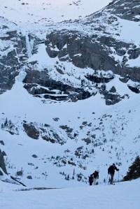 The lakes were semi-unpleasant. Long, flat stretches that we had to pole across. I stayed extremely close to the edge, as I heard some popping and cracking as I went over some sections. It seemed like forever, but we eventually got to the trees. It was fast and fun, with enough random obstacles (that were entirely inconsequential on the ascent) to keep things interesting. After ducking fallen trees, jumping rocks, and dropping small cornices for half an hour, we finally were back to the parking lot. It was 5:55pm, a full twelve hours and forty-five minutes after we left. I’m glad to have done it, but that’s one trip I’ll probably never repeat.