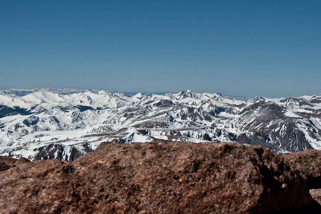 The Homestretch was absolutely miserable in ski boots. What can nearly be walked up in the summer (wearing trail runners) was a fight for survival in AT boots. If it had been snowy (as it is most winters, and as it appeared a few weeks ago) it would have been a straightforward climb up. Nevertheless, at 1:15pm, we hit the summit.