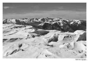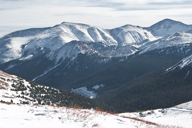 Onward and upward we went, to the Continental Divide at roughly 12,400′. It was windy but the temps were pretty nice. There are no photos of the skiing because it was absolutely terrible. Variable soft/breakable crust all the way down to the road, then the road was narrow, bumpy, frozen hardpack with intermittent dirt and rock patches. Oh well, still a good day out, and a good warmup for the season. We’ll end with a parting shot from the Divide: