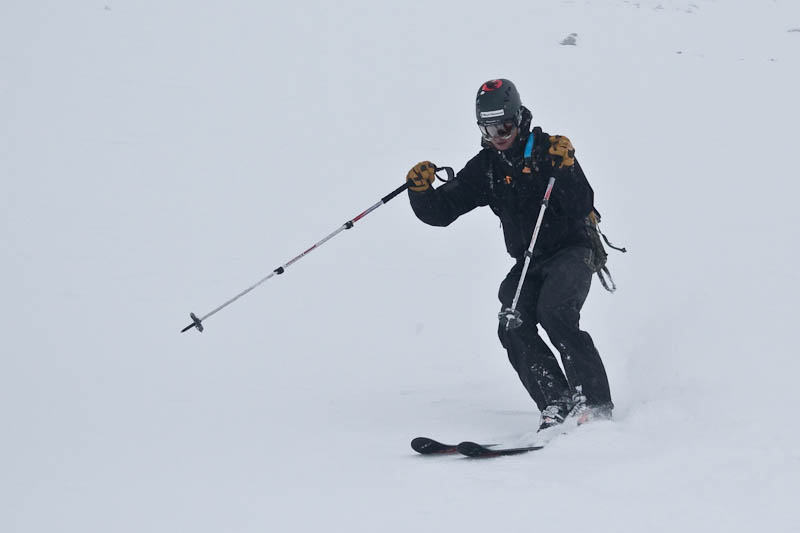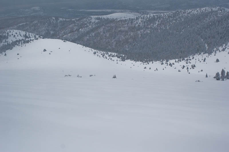The drifting on the slopes below was unlike anything I’ve ever seen. It was just a huge row of wind lips and walls, and it was like skiing down a bump run where you can’t do anything other than slam into the front of every bump.