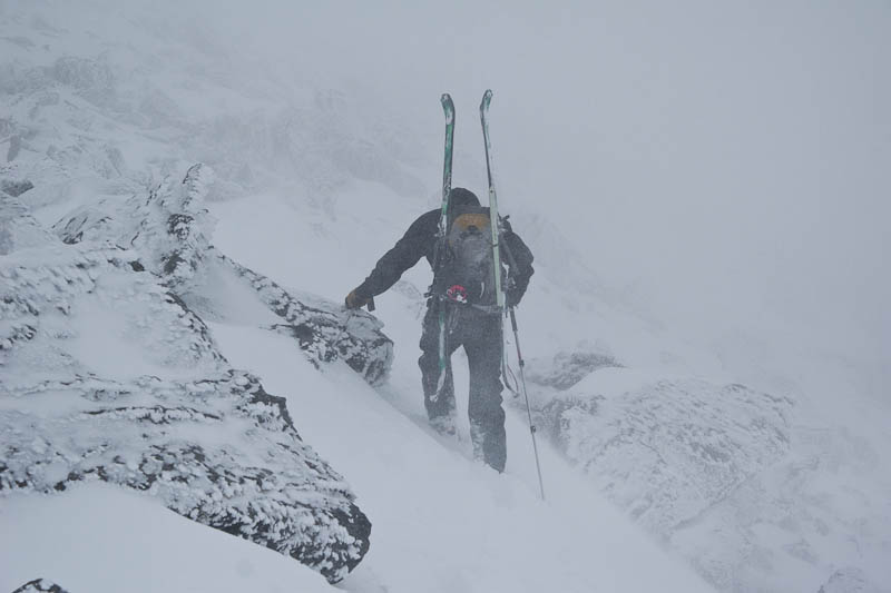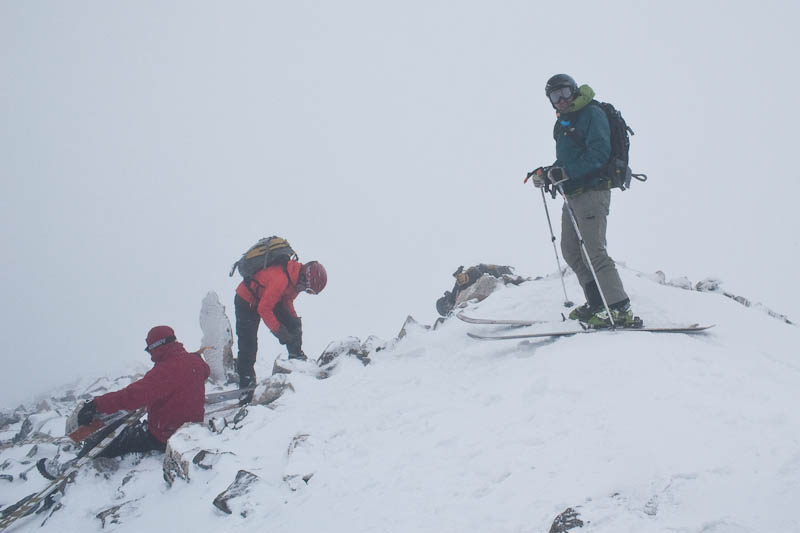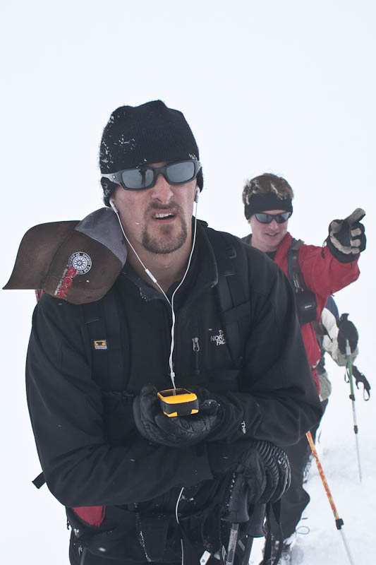 When we had about 1,200′ to go, there were some comments that people still weren’t confident that they were going to make the summit. Nuts to that, I said we’ve come all this way and we had less than a quarter-mile of vertical left to go. “So you measure vertical in miles now, eh? ‘Oh yeah, easy, that’s only a mile of vert.’ ” More laughs, despite the miserable weather. Onward and upward, closer to the summit.
