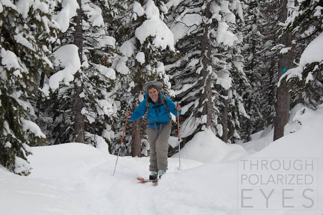 Lauren and I were in brand spankin’ new AT boots on this approach – me in the Scarpa Maestrale (review to come), her in the Gea. I didn’t have any problems, but her feet were not pleased with making a 7 mile approach with a heavy pack in brand new boots, and became quite painful. She toughed it out though, and was incredibly happy when she finally made it to the hut.