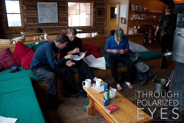 Although 3/4 of our group had been here before and knew exactly where we were heading, the other folks in the hut wanted to get a little more adventurous, so Derek looked over the topo with them. I’m not sure where they went, but they said it was good.