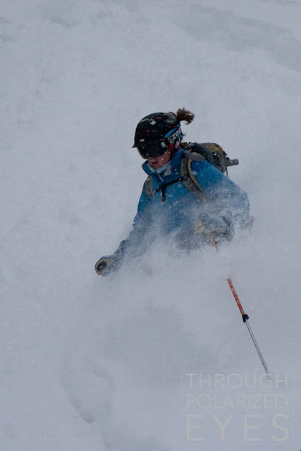 It was good that we had a hearty breakfast, because we had a good, hard day of skiing awesome pow ahead of us. This shot of Lauren below is about as shallow as it got.