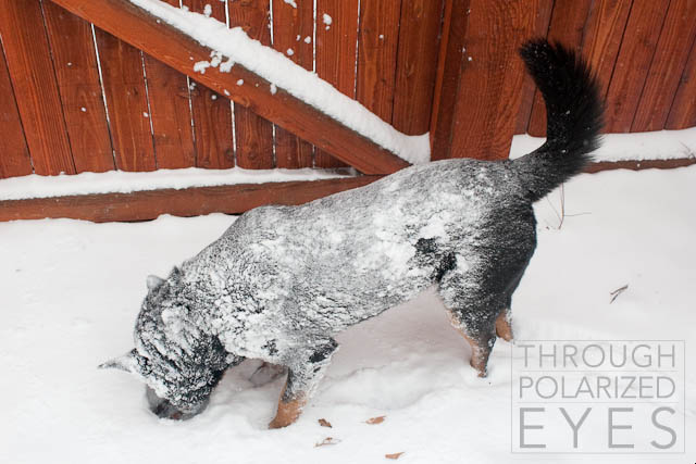 I have to take credit for this snow-job – Scout loves the snow but she wasn’t quite rolling around enough to get fully coated.