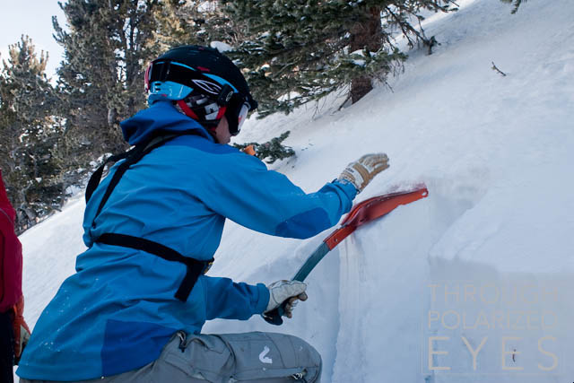 We stopped and dug around, finding pretty cohesiveless snow.