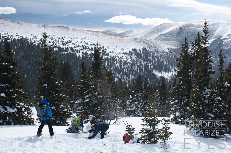 This past weekend, Friends of Berthoud Pass held the on-snow portion of their grassroots avalanche education program. I volunteered to facilitate groups both days, and I’m exhausted after two ten-hour days up at the pass. Tempted by breakfast burritos at the instructor refresher, Lauren and I signed up to show up at 6am Saturday morning to prepare the beacon-rescue scenarios. When the 4am wakeup call is three weeks away, a free breakfast burrito sounds like a great deal. At 4am, it’s suddenly a much-worse bargain. Nonetheless, we dragged ourselves up there way too early.