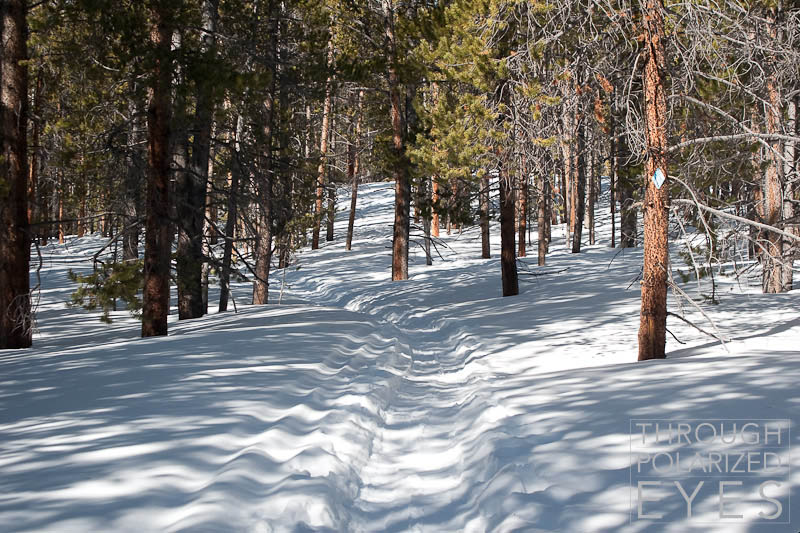 We didn’t get an early start by any means yesterday. Jim and I decided on a 9am start from the Leadville Fish Hatchery, which meant I got to sleep in until 5am for a winter 14er climb and ski descent – unheard of! Granted it was two days after the DST changeover, but that’s still pretty late. On the drive out from Leadville I was able to scope out my line, and was pretty happy with what I saw. We made our final preparations in the parking lot, with Jim electing to go with nordic wax rather than skins for the approach. This didn’t work too well on the icy, spring-like morning snow. A few rewaxing sessions later, Jim threw on the skins and we were off.