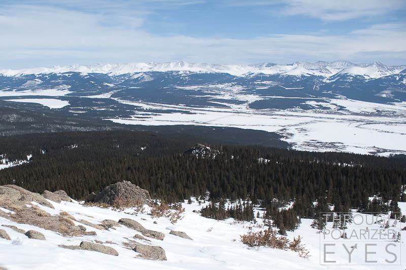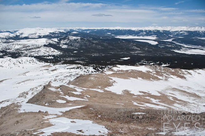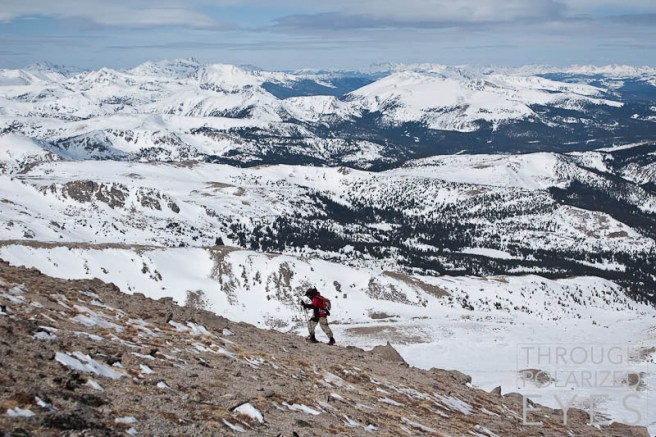 I took off once we broke treeline while Jim did some transitioning, as I knew I’d be slower from there out since I was carrying my skis to the top and he wasn’t. The look back towards Leadville shows just how far you have to go through the trees on this route – about 4 miles.