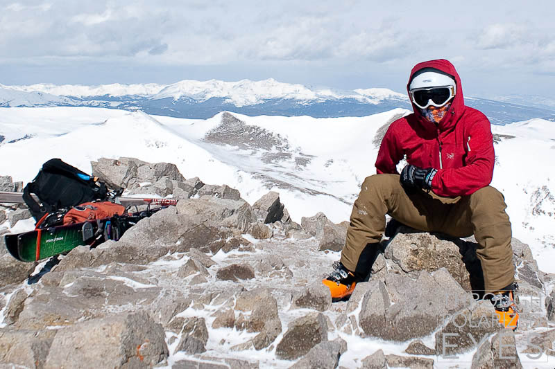 The winds weren’t terribly bad, with the exception of errant gusts strong enough to knock you down. At one point the wind was at our backs, and sped progress along for a few minutes. During one of the knockdown gusts, I dug a quick hand pit and found windslab on top of facets, closing out the only practical option for skiing over to Cameron. I was only a few minutes behind Carl to my respective summit, where the winds were remarkably gentle.