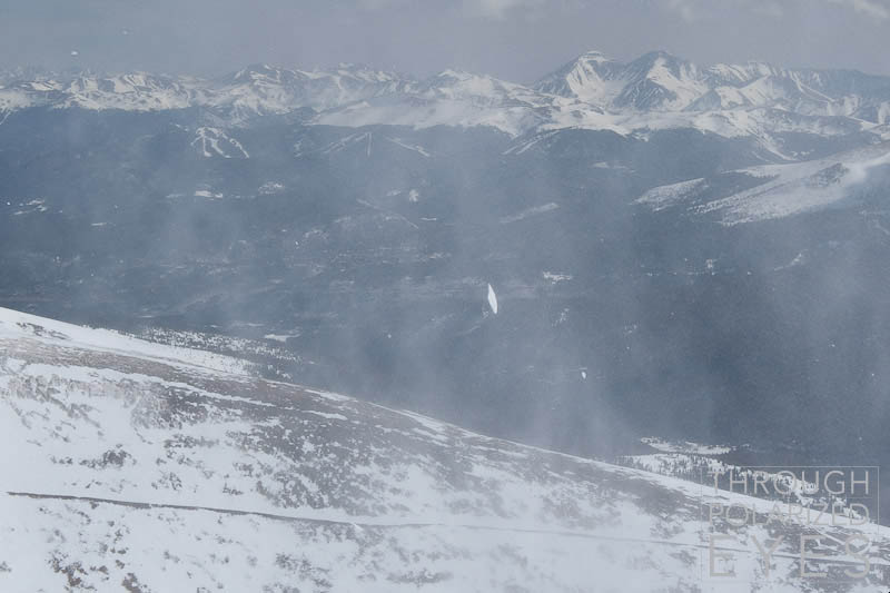 One gust was so powerful it grabbed some dinner-plate sized chunks of snow and took them soaring, and I managed to grab a photo of them.