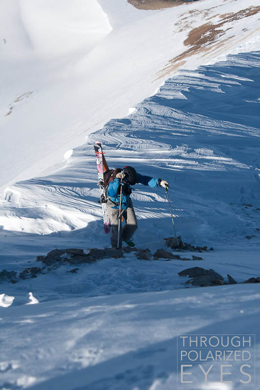 Sunrise hit, and I was concerned about a skiable line off the top, really not wanting to have to ski down the standard hiking route.