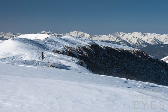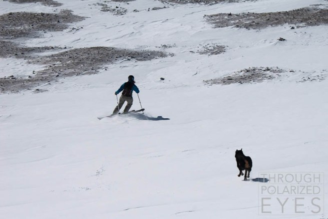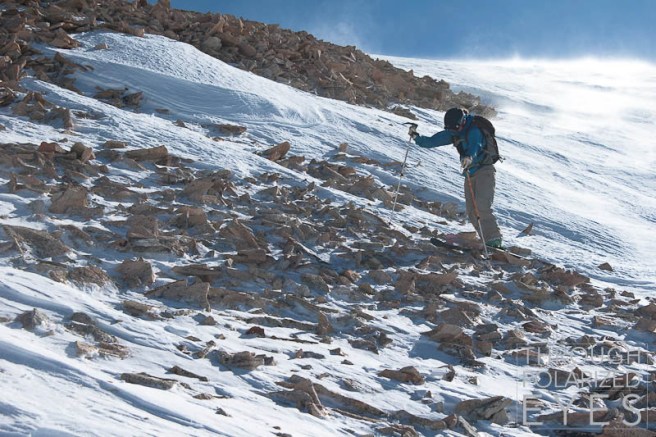 Lauren got a pretty good introduction to skiing 14ers – including walking over patches of rocks.