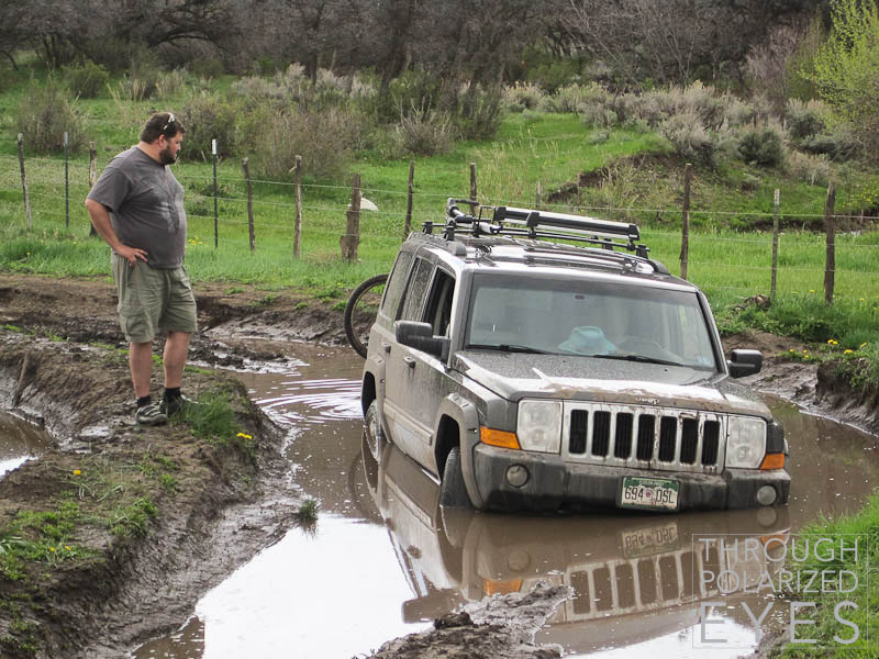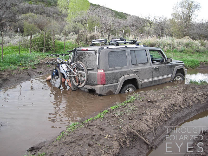 It was pretty well stuck. Fortunately, someone in a Wrangler had a winch and was able to pull it out.