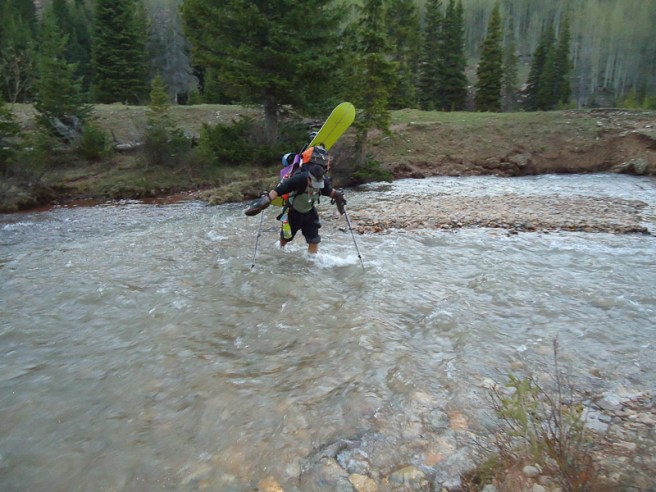 A few miles later – just before dark – we had to make our first creek crossing of the trip. It was cold.