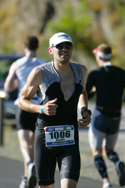 I had visualized my T2 countless times – hop off the bike, sit down to change in to my running shoes, take a deep sigh thinking “well, time to run a marathon,” and head out. This is more or less how it happened, but I could still save some time there. Regardless, once T2 was over, I ran.