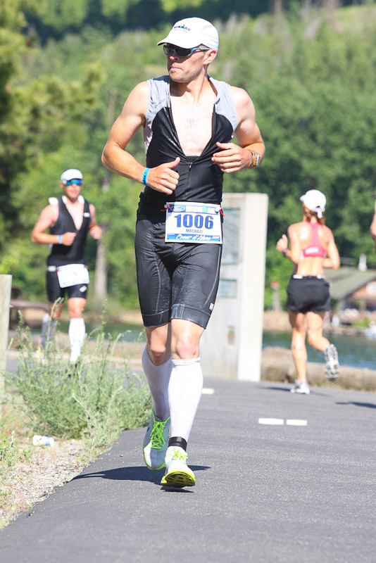 Friday I grabbed breakfast at Jimmy’s Down the Street (where I would have breakfast every day except for race morning, and which was featured on Food Network this year) before going for a very short bike ride and jog, registering, and going for a swim in the 58F lake. In the afternoon I rode the marathon course on my bike before getting ready for the welcome dinner. Saturday was bike check-in and transition bag drop-off, followed by another swim in the cold lake. My parents came out to cheer, so they took Scout for the off my hands after dinner until after the race Sunday. I had some time to walk around and soak it all in before getting a few hours of sleep.