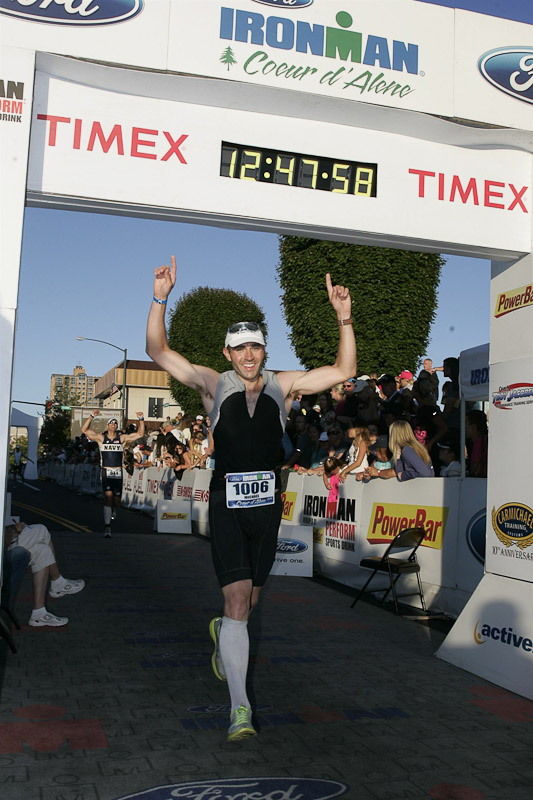 And that was it. Twelve hours and forty-seven minutes after diving in to the frigid water that morning, I was done. Seven months after starting training, it was over. I convinced myself that I was finished with the full-Ironman distance, as it was just too much. Too much in training and on race day. After being whisked away for another photo, a quick sports massage, and some pizza, I got changed in to my street clothes and headed out.