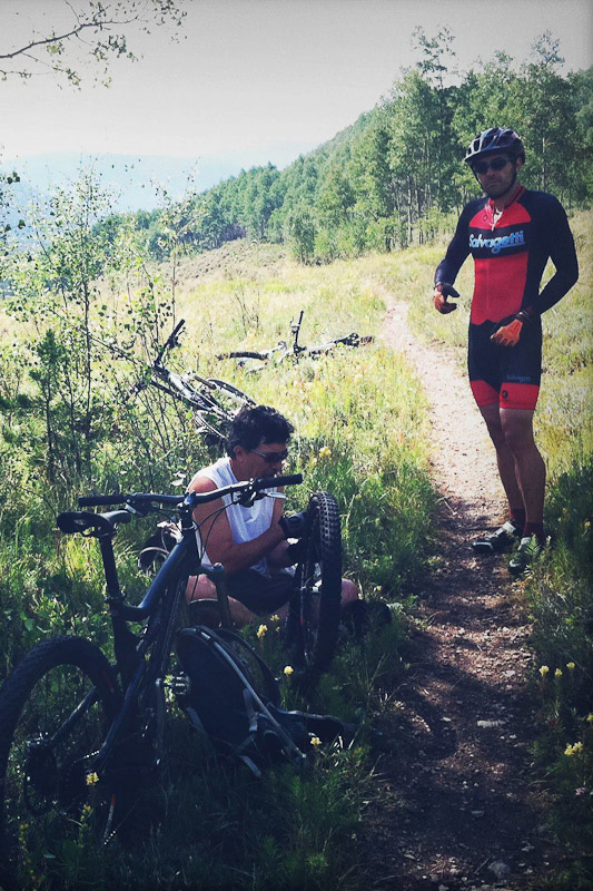 Of course, no long ride would be complete without some sort of mechanical, and Larry flatted on the descent.