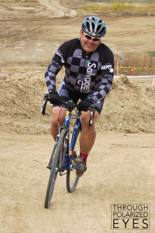 After a little pre-riding to learn the course and try to warm up, it was time for the first races of the day – SM55+ (old guys) and SW4. Larry Grossman (racing announcer extraordinaire) lining up was an unexpected surprise, and he did quite well – although no one was a match for Gary Thacker.