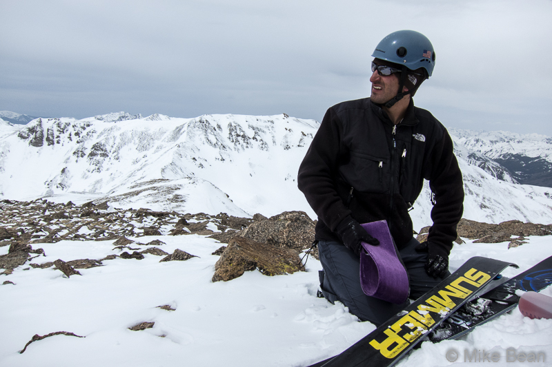 Half an hour later, Marc was back up to the summit block of Belford, and we quickly got ready to go. We again went one at a time through the NW gully, Marc making it look much better than I. My legs were jello after the day’s 6,100′ of climbing (and over 11,000′ for the weekend) and I had one of the most exhausting easy ski descents of my life.