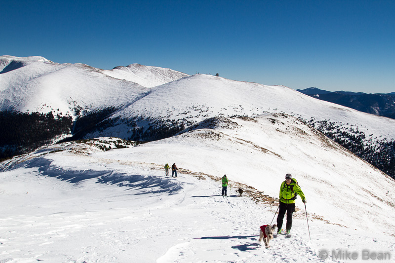 It got a bit cooler, to the point that I had to put a hat and softshell on to stay warm, but it was still about as nice a day as you could ask for. Sophie was plenty comfortable on the summit of Russel.