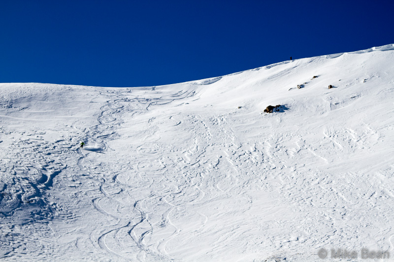 Barely visible is Chris skiing. We weren’t the only ones with this line in mind.