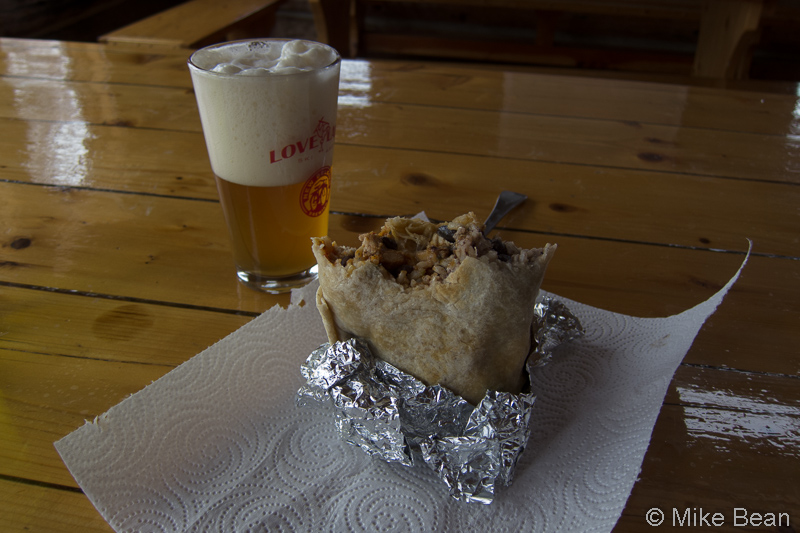 While Hans + Co were out making the most of the snow, I threw a burrito that I picked up on the way to the TH on the stove to heat up, and poured myself a beer. It perfectly hit the spot, and fueled me up for my only lap of the day that afternoon.