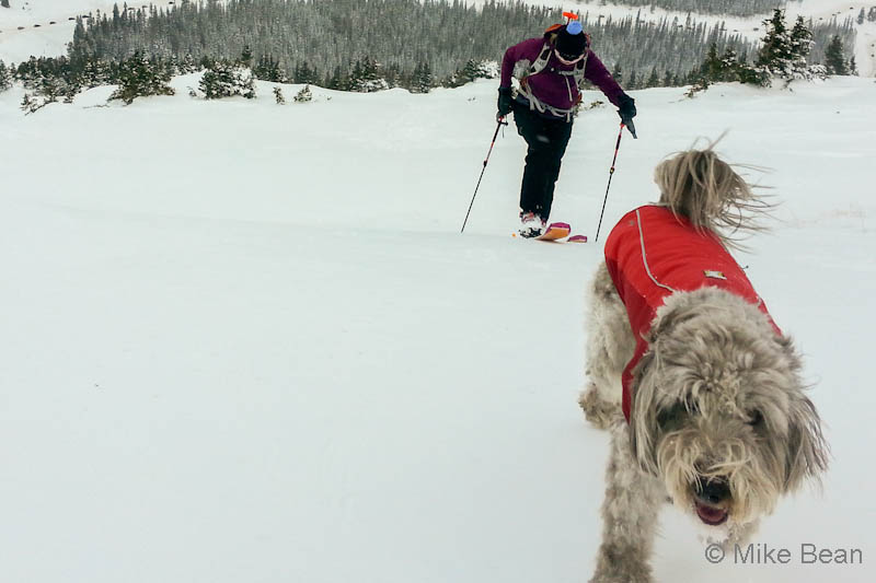 Lauren was getting started slowly so Kendall, Sophie, and I headed up to treeline on the East side of the pass for a quick warmup.