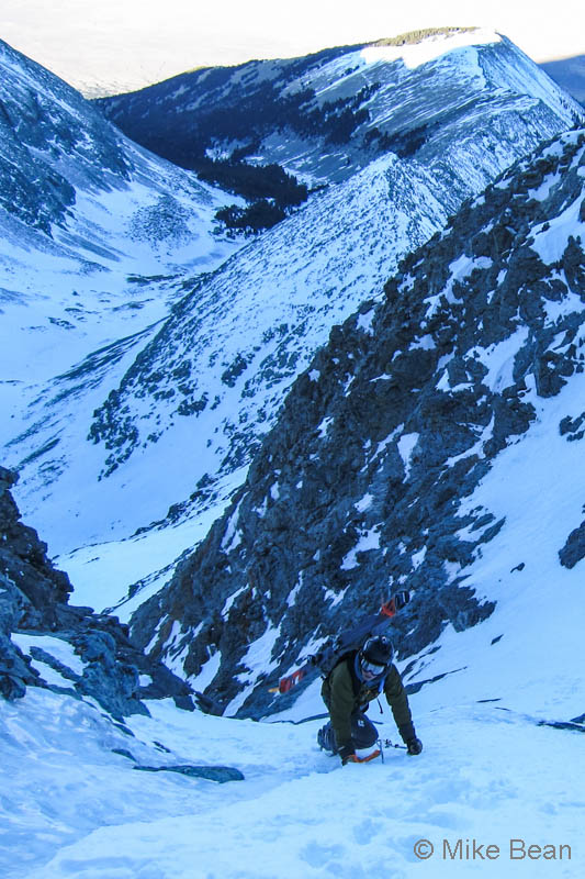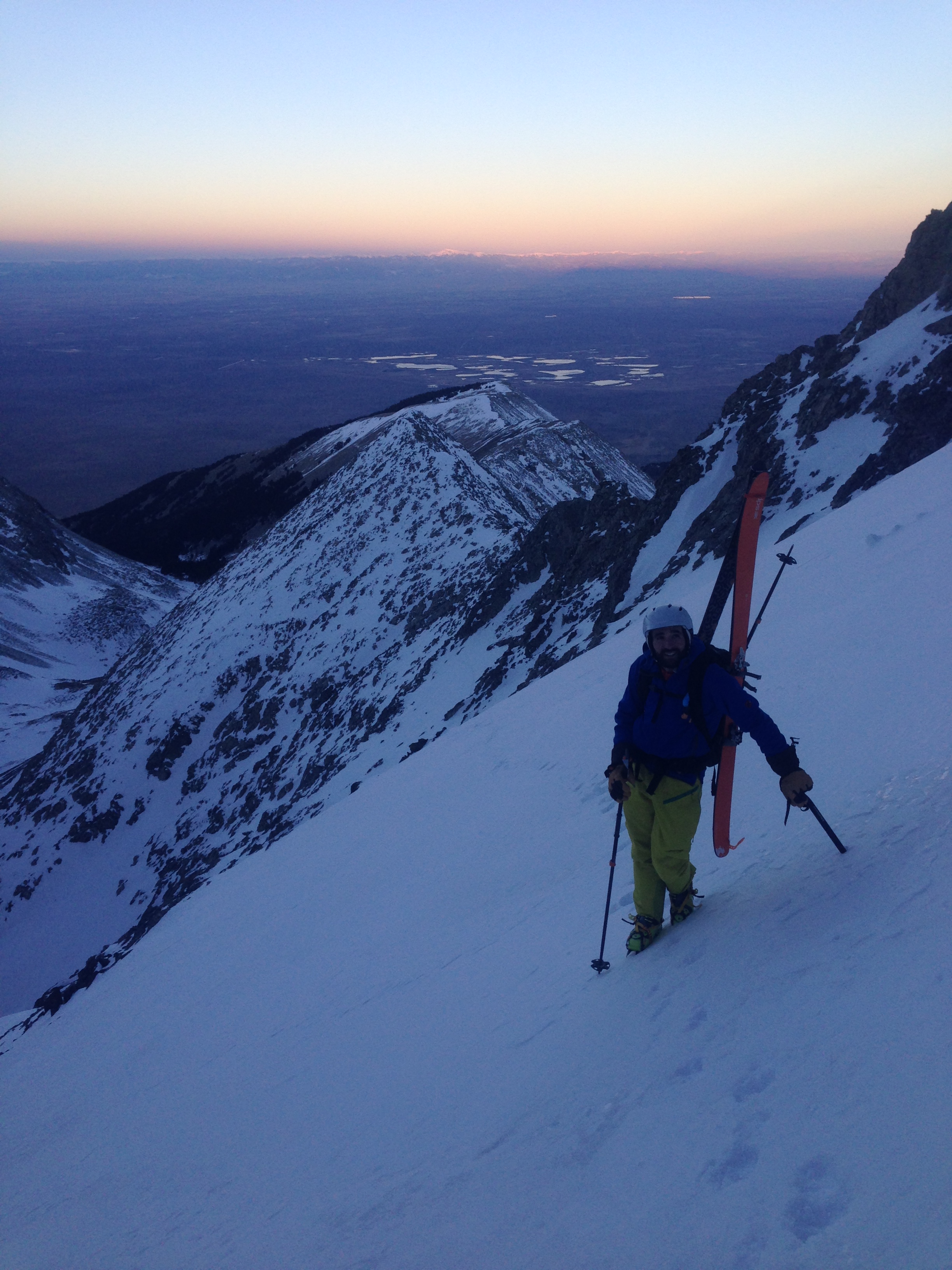 I’ve been itching for ski mountaineering season to roll back around, and we’re finally getting there. Much of the state isn’t ready yet, but with its thinner snowpack and warm, sunny weather, the Sangres are rapidly coming in to condition. The timing on this climb was a bit unusual, with Eric and I heading straight down for the climb after a full day of work on Thursday and skipping the couple hours of poor sleep that these days typically start with.