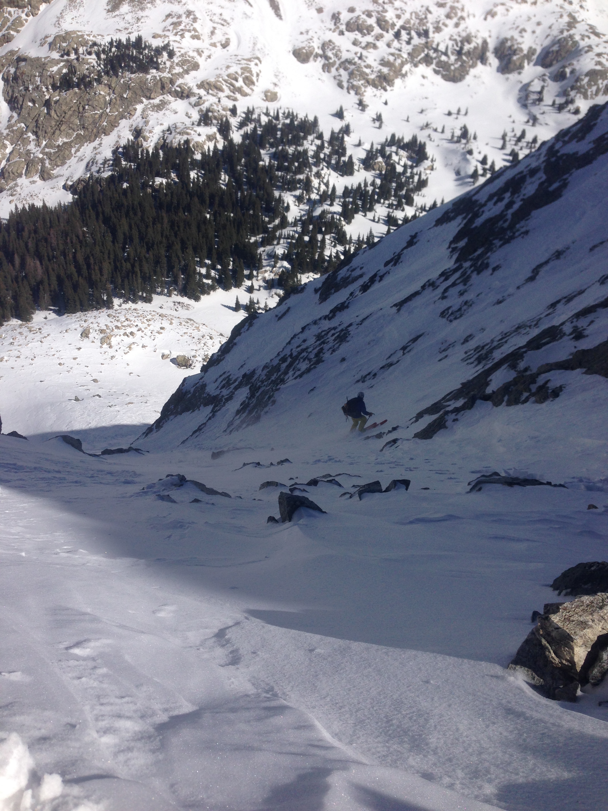 After what felt like an eternity, we were back to the notch in the ridge that drops to Lake Como. Greeting us was a fun, soft ski down that was pretty tough on our tired bodies.