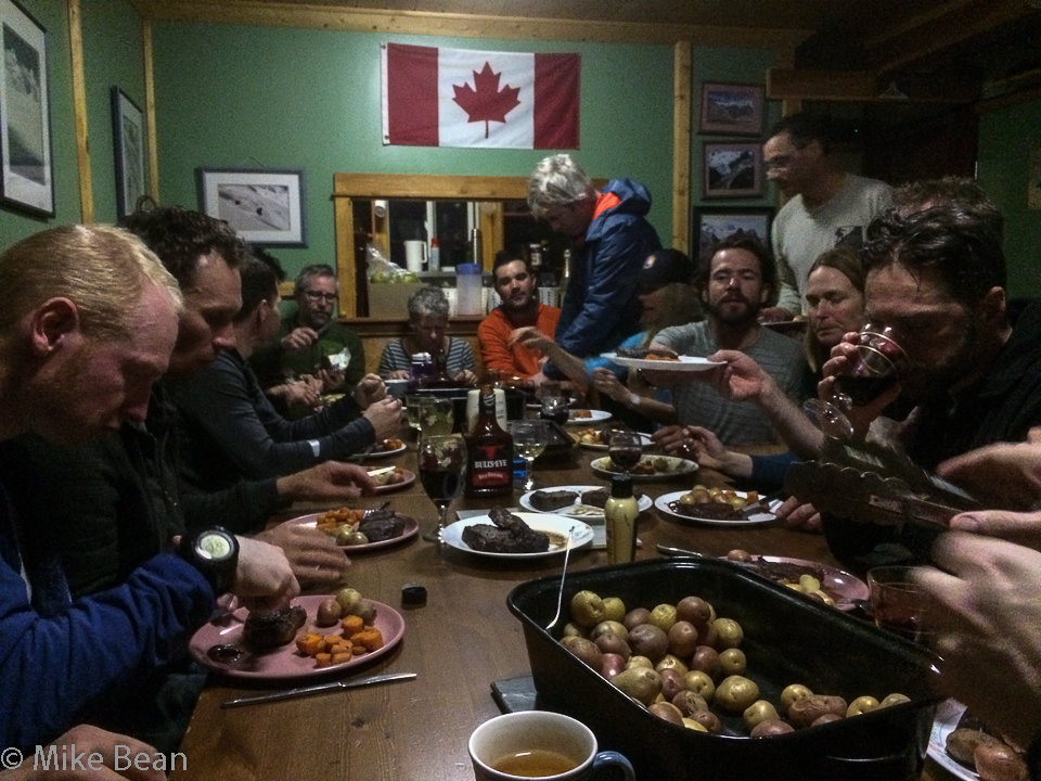 The rest of the day was a hectic one, with most of the group practicing avalanche rescue while I unpacked, sorted, inventoried, and organized the groceries. We went for a short shake-out skin up the Escargot Glacier before I cooked up baked salmon and asparagus.