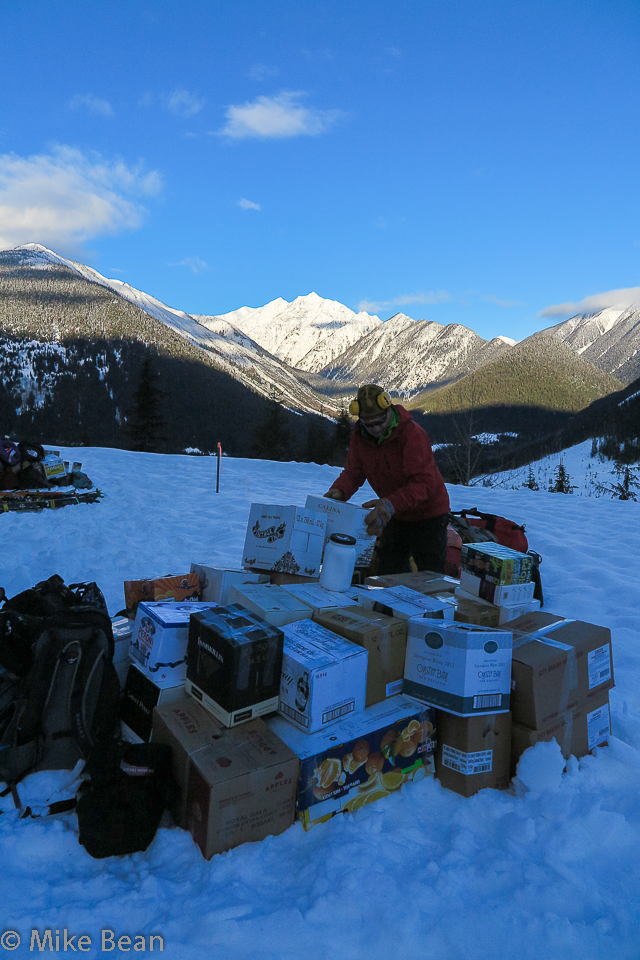 Half the group and half the gear made the first flight, so the remaining folks got to enjoy securing the stack of boxes with their weight.