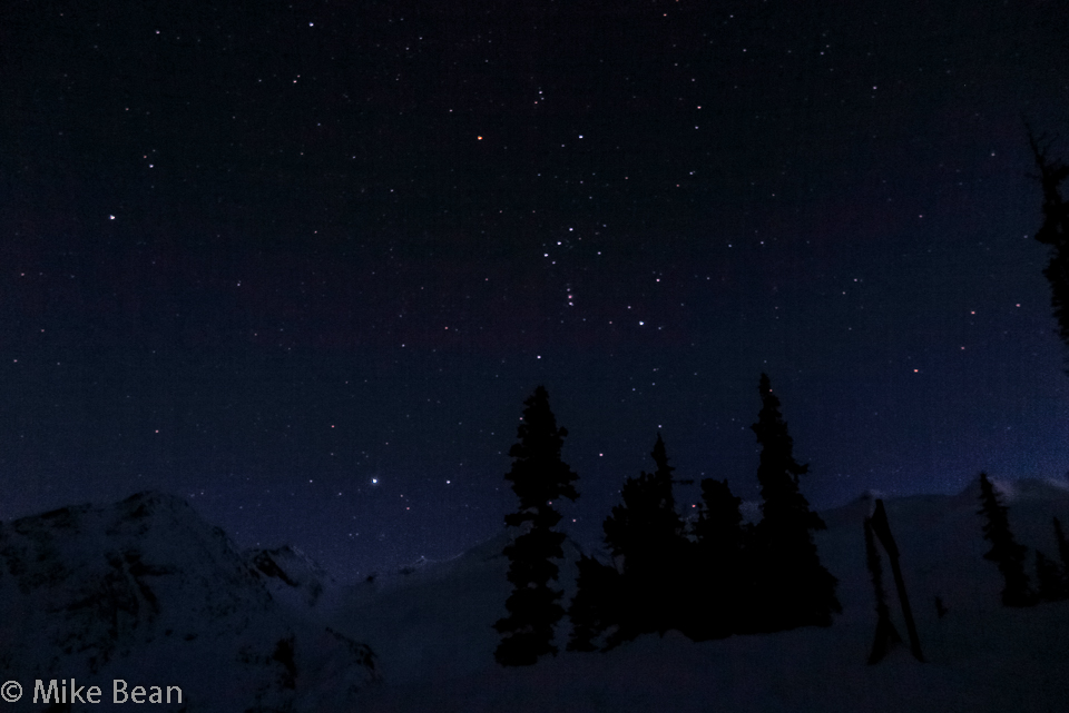 The skies were clear that night, and I was able to get an almost-decent shot of Orion and the mountains. It made me miss my SLR, but I still love it. There are many photographs of Orion and Sirius over mountains like it, but this one is mine.