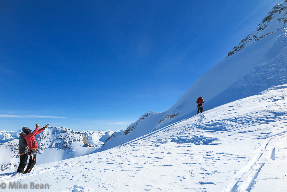 Our first objective for the day was Perfect Peak, for a descent down a steep north-facing gully.