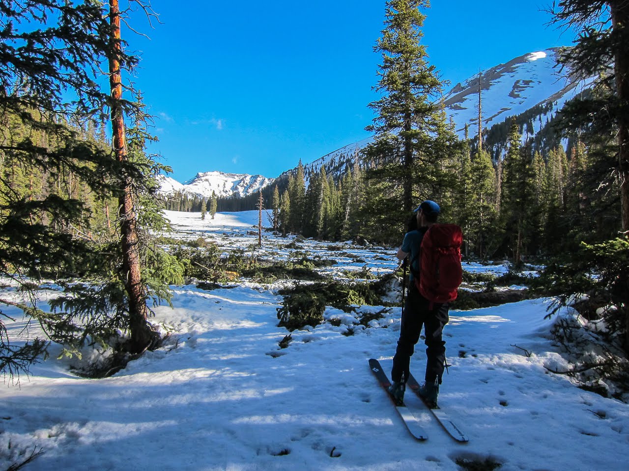 I’d also forgotten how flat the first few miles are, with only 1500′ of elevation gain in 3.5 miles. A little less than two hours in and we found ourselves in a newly-expanded avalanche runout zone near the base of the Southwest Couloir.