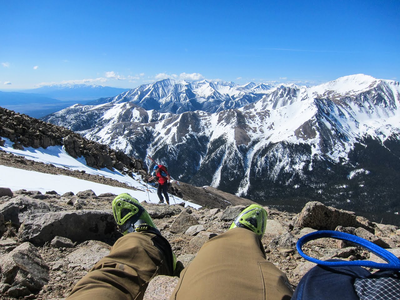 We hit the summit ridge at about 10am, and I lied down on some rocks to eat, drink, breathe, and let me legs recover.