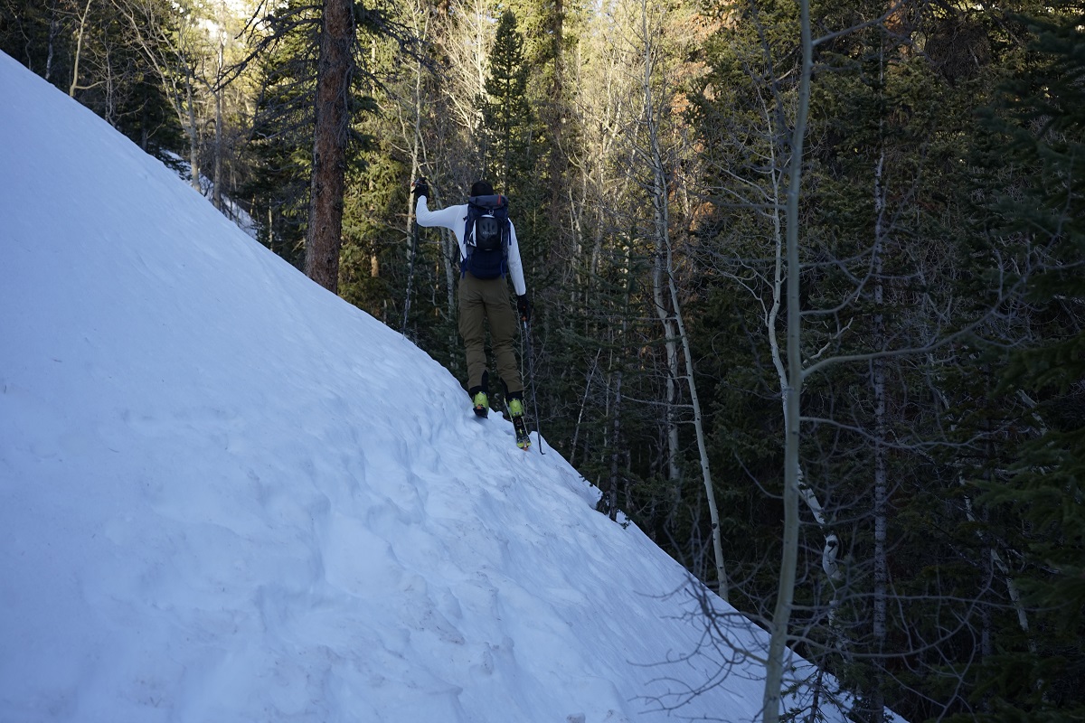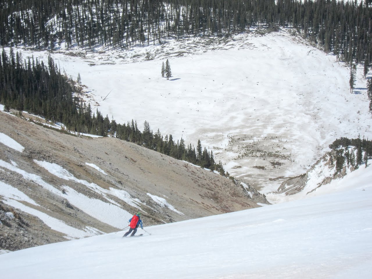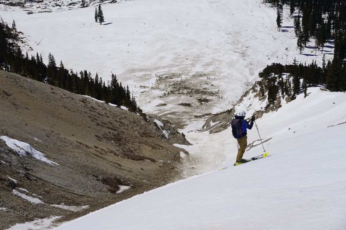 The descent started with a not-so-exciting but not-so-bad sidehill to get back to the top of the ski line.