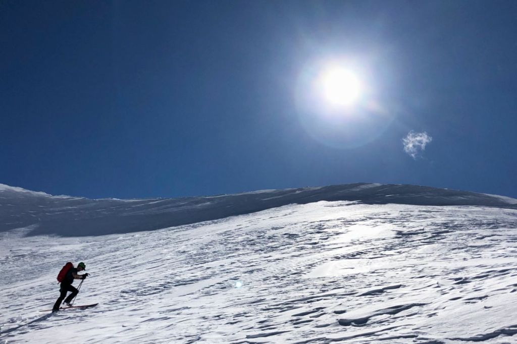 I took back over for the flatter section after we broke treeline, and had to let John take back over for the final push to the cornice.