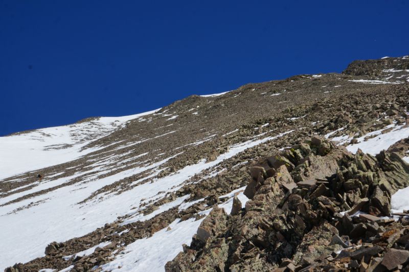 Between the altitude, 2.5 hours of sleep, 5+ hours in the car, 6+ hours gaining the summit, nearly 5,000′ of elevation gain, and wallowing in snow and scree, I wasn’t feeling so great.