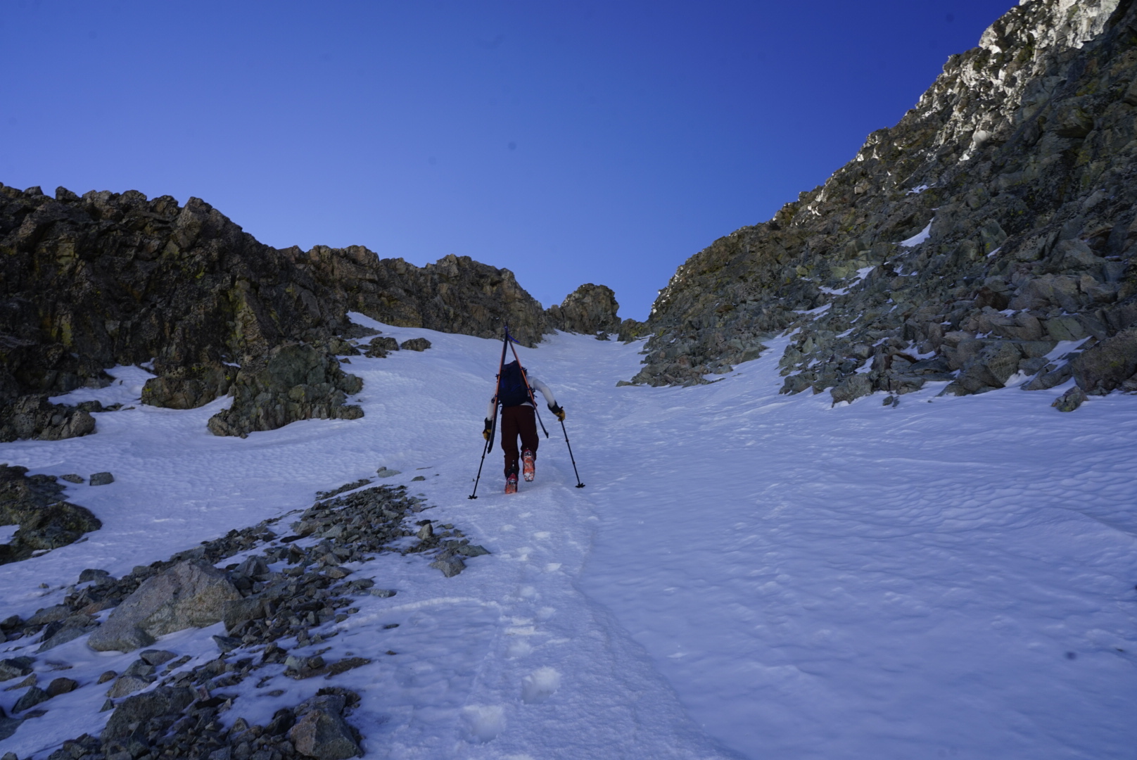 Fortunately the line was in from the top, through not without a little bit of rockiness between the summit and the main ski line. Weather was calm and pleasant, so we didn’t rush to get ready.