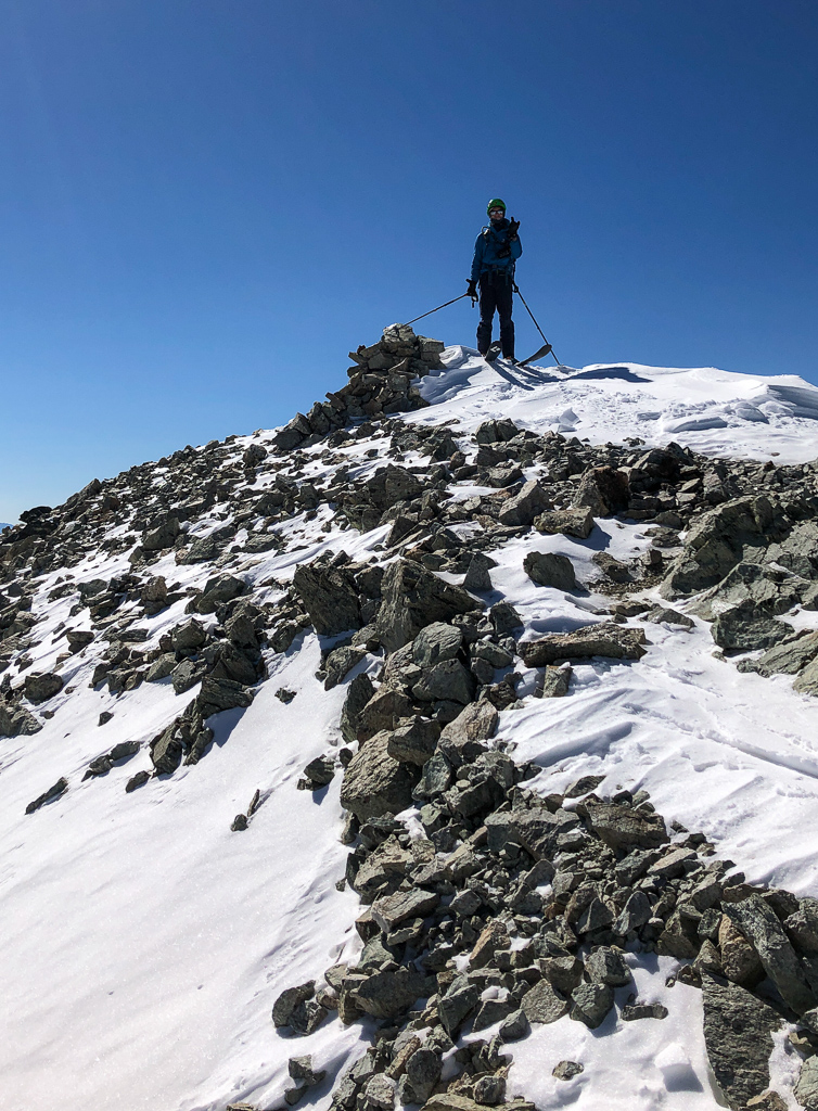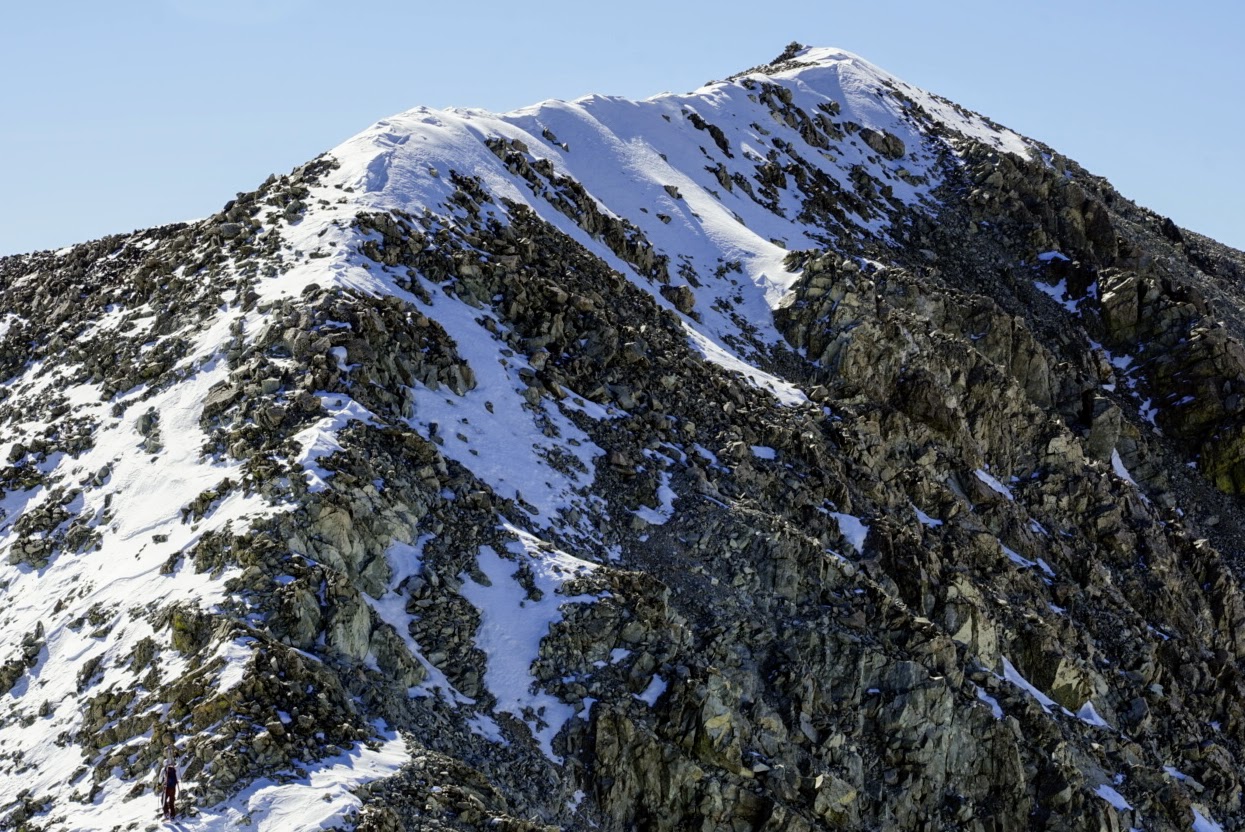 The route (and microspikes) worked out pretty well, and we found our way to the summit ridge pretty quickly, which has a less-than-trivial false summit (aka “West Lindsey”).