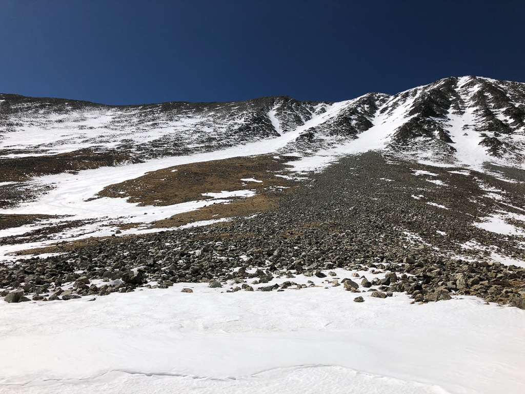 With ski season solidly in to “playoff season” I’ve been finally getting back at it regularly. The Sangres have been above normal in snowpack, so a couple weeks ago John and I drove down as close to the Mt. Lindsey trailhead as we could. A little after 11pm we hit a solitary snowdrift. It looked like if we could get through it we’d be able to drive quite a bit further, so we spent at least half an hour trying to get through it, without luck. The next morning we’d discover more (and deeper) drifts scattered along the road ahead, so ultimately it didn’t matter. About midnight we climbed in to the back of the truck for a couple hours of shuteye and were walking in shoes before 3am.