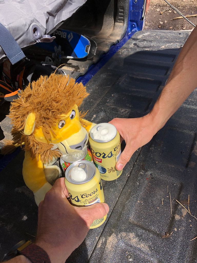 We’d gone in to this thinking it would be a relatively easy day, and we ended at 16 miles with 5,600′ of climbing in just a bit under 12 hours. Much bigger than we expected, but no one was seriously hurt and we had a fun ski which is always worth celebrating. I think this line is one that, once you can drive to the summer trailhead, is unlikely to still be in condition – so I’m glad to have gotten this done in such good shape.